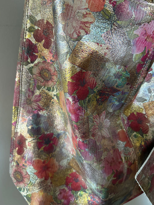 Leren bewerkte bloemen tas