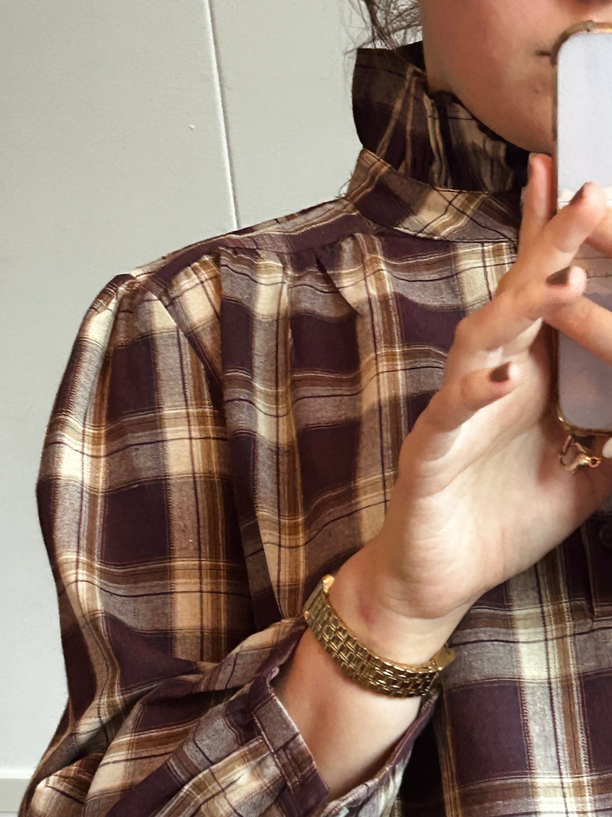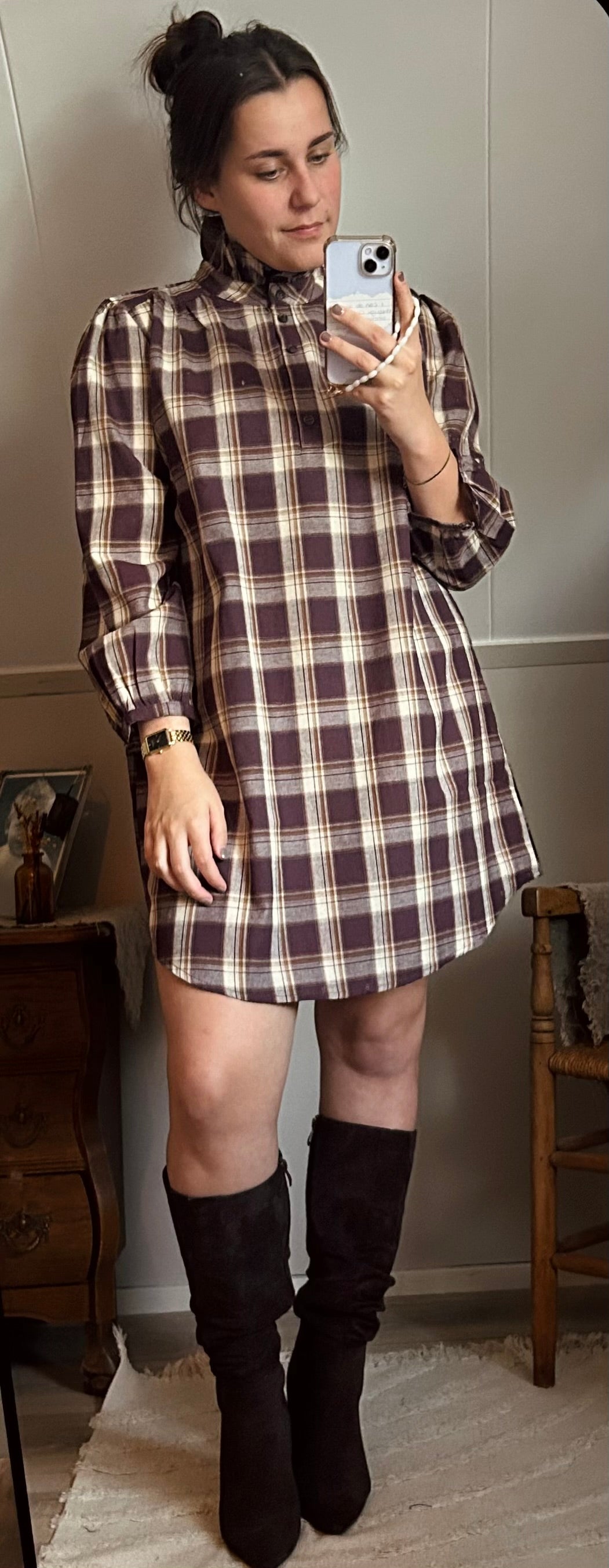 Kleuren in de jurk: Bordeaux, cognac en beige