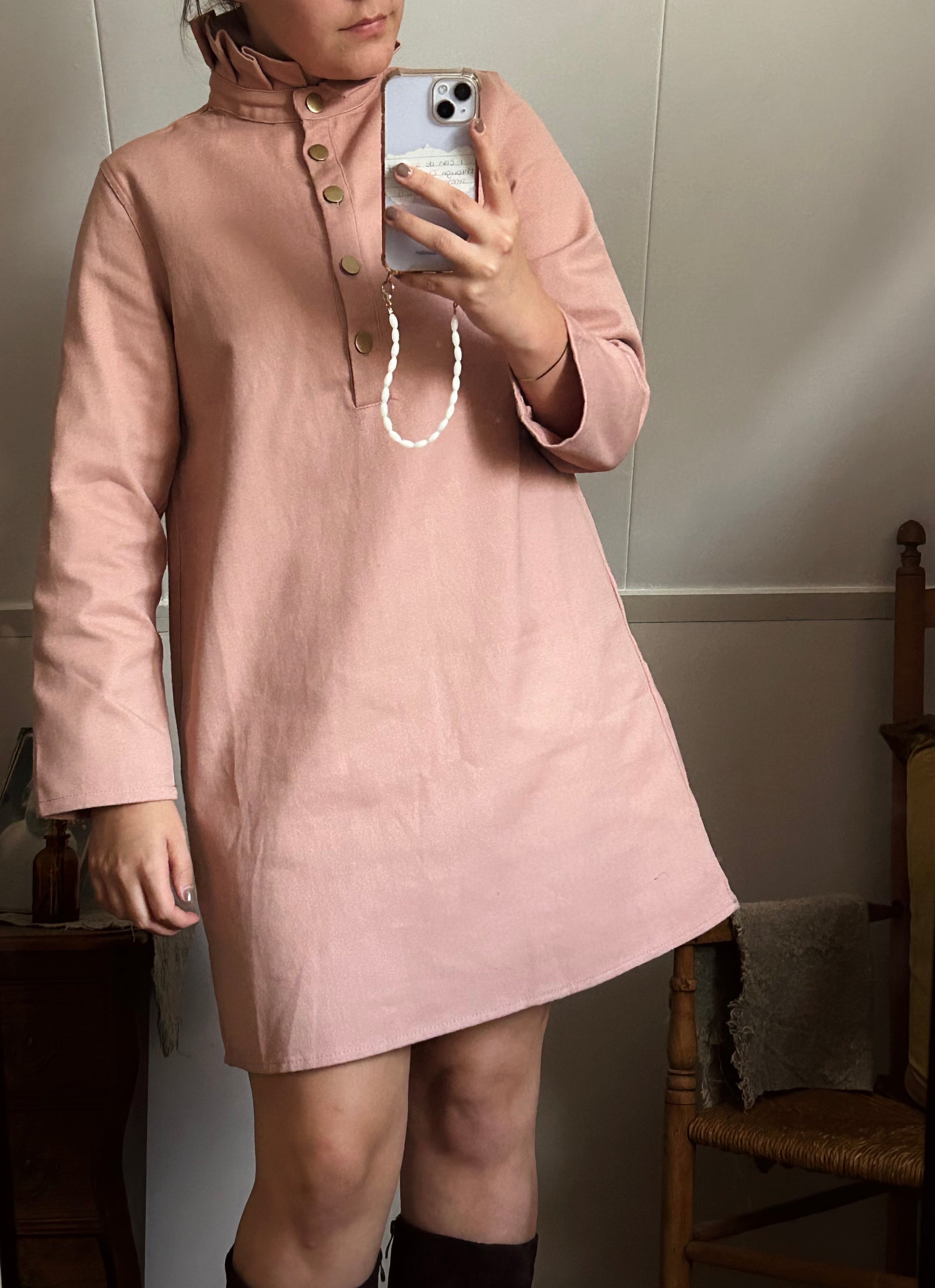Spijkerjurk met een leuke kraag en knoopjes aan de bovenkant