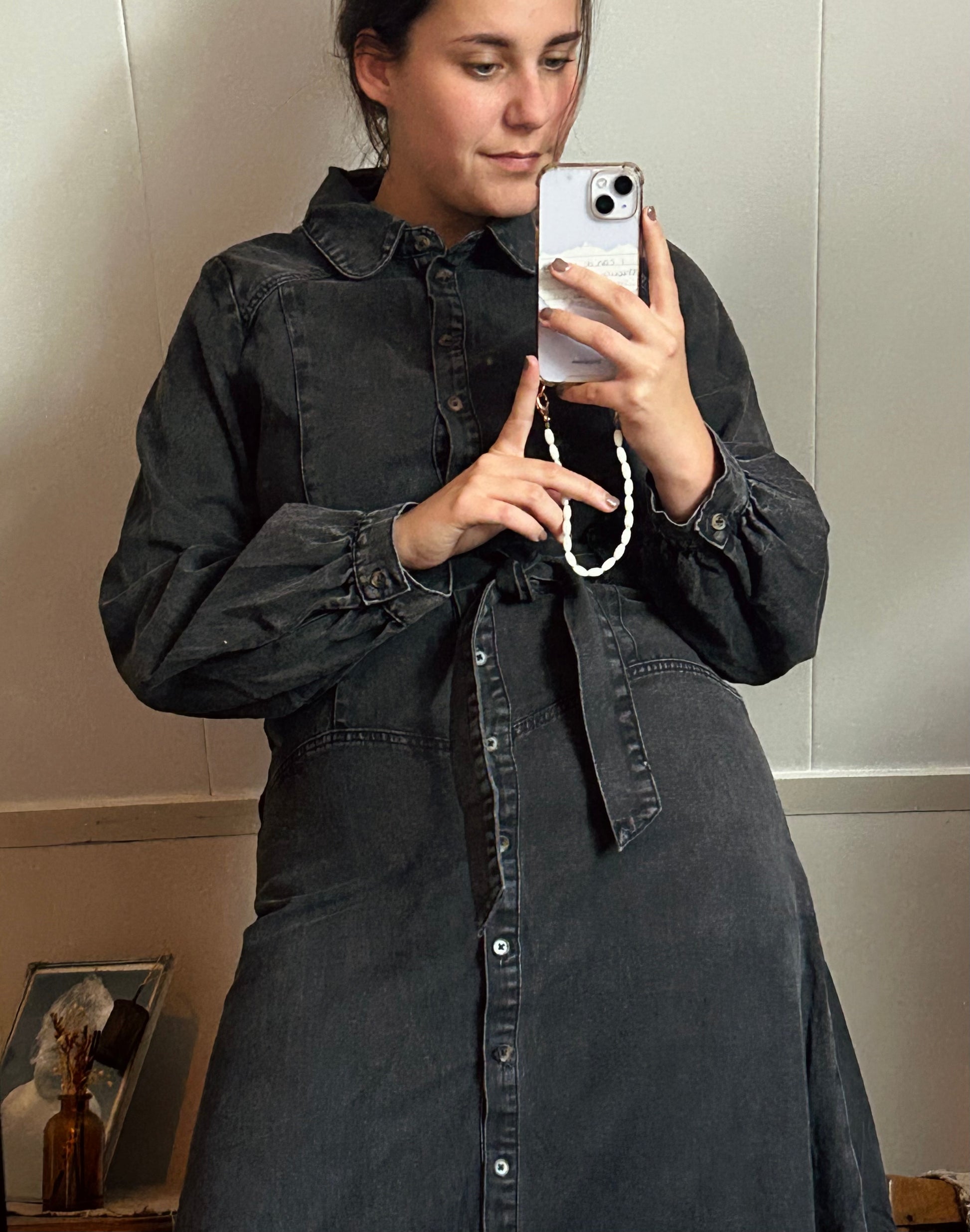 Mooie fijne spijkerjurk. Loopt met knoopjes helemaal door.