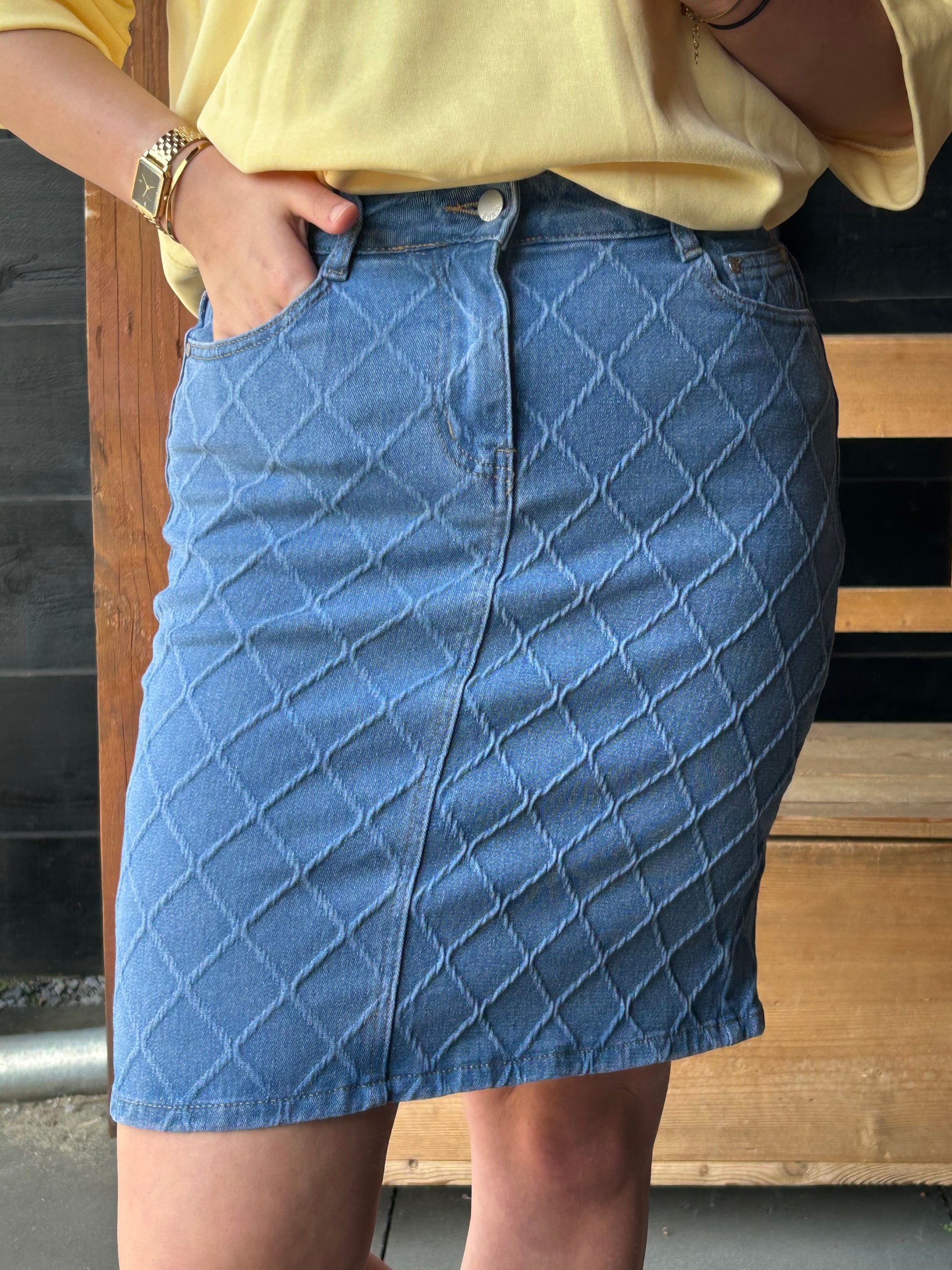 Prachtige spijkerrok met een goede lengte, zit stretch in en heeft zakken aan de voor en achterkant