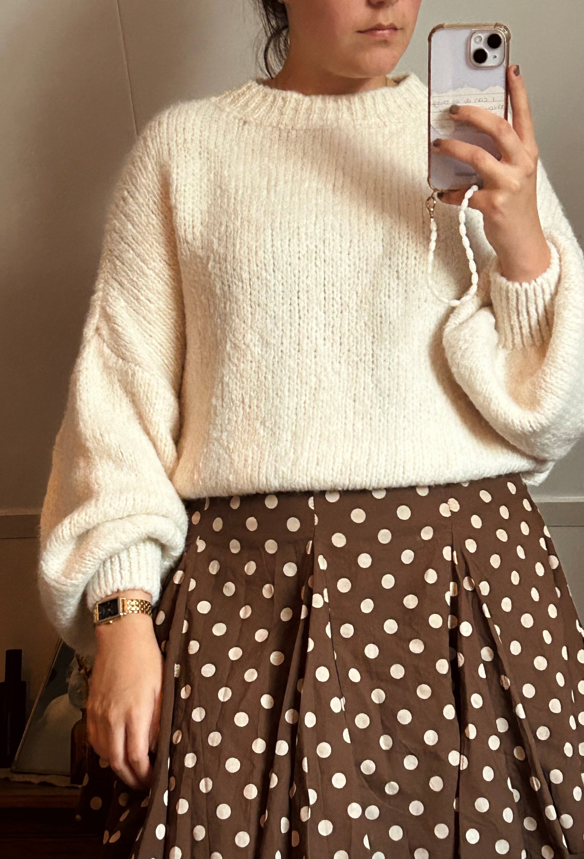 Fijne trui, crème kleur en kan tot maat 44 gedragen worden!
